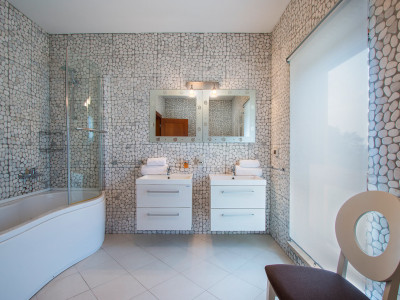 Moderner Baustil, top Interieur, Ausstattung der Luxusklasse mit feinstem Parkett, Keramik und Marmor. Und auch alles an Elektronik ganz exquisit, von der Küche bis Heizung und Solar. Grosser Pool mit Gegenstromanlage – tolle Sommerküche, mit eigenem Poolhaus!